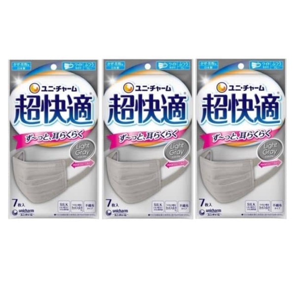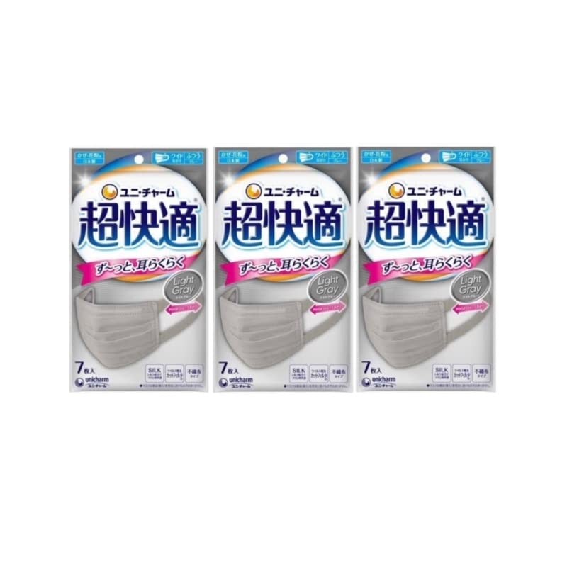 [超快適マスク] (3個セット) ユニ・チャーム プリーツタイプ グレー ふつう 7枚