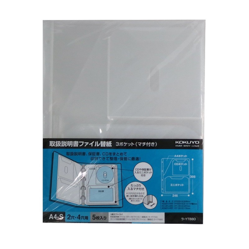 コクヨ ファイル 取扱説明書ファイル用替紙 3ポケットタイプ A4 ラ-YT880