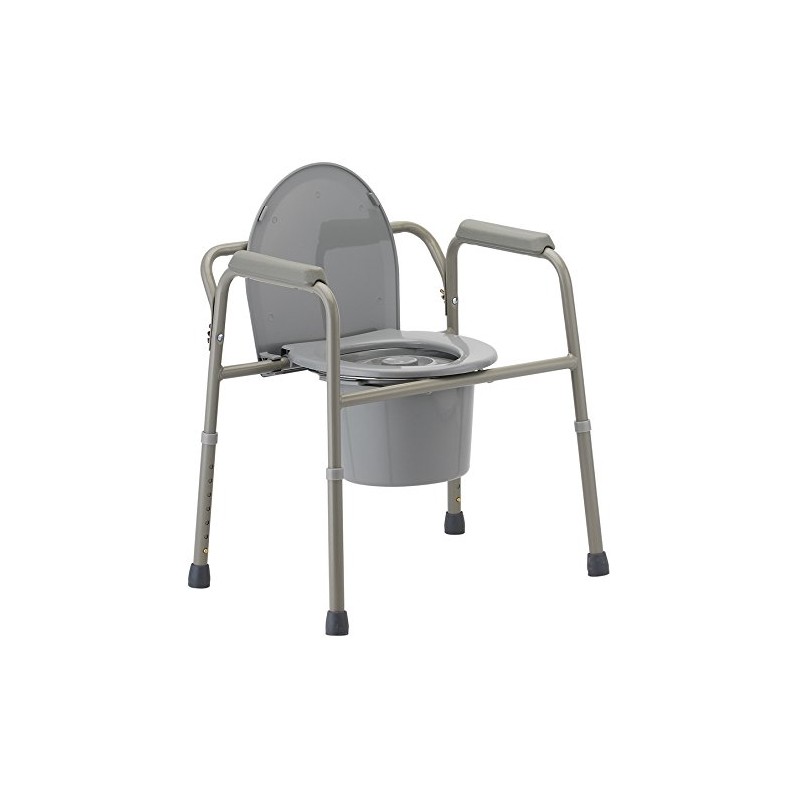 Description The Folding Commode folds and unfolds in seconds, making this model ideal for travel. Comes complete with a bucket, lid, & splash guard. Can be used beside the bed and over the toilet as a raised toilet seat with arms Ideal for travel: folds and unfolds in seconds Adjustable height steel frame Bucket, lid, and splash guard included Toilet seat opening: 8″w x 9.5″d
