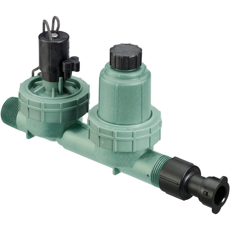 - Reliable jar-top valve, 24 VAC solenoid, manual actuation lever, and bleed screw 120-mesh stainless steel filter with flush port on the top for easy cleaning Compact pressure regulator reduces pressure to 30 PSI at up to 10 GPM; Drip-Lock adapter connects to 17mm or .700-inch drip blank distribution tubing Compatible with controllers from Orbit, Hydro-Rain, and other major brands; control with a B-hyve smart controller for optimum water conservation Saves water in drought conditions