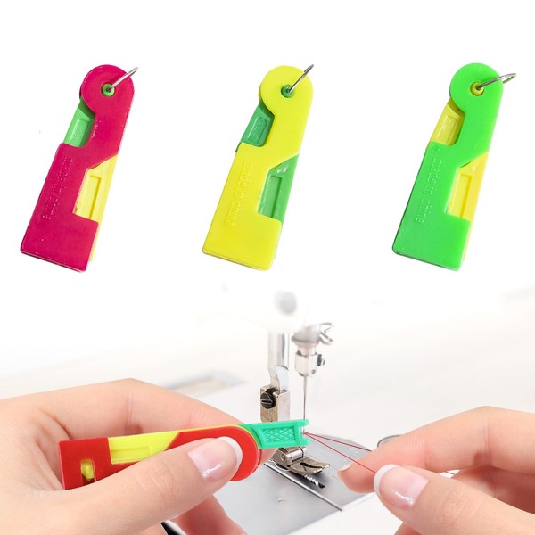 3 Pcs Automatic Needle Threader, Plastic Sewing Machine Needle Threader, Simple Needle Threaders Hand Sewing Automatic Needle Threaders for Hand Sewing and DIY Threading Tool(Random Color)