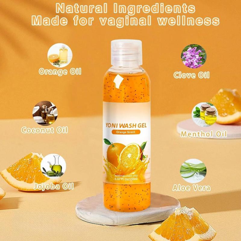 - Orange yoni wash set helps get rid of constant feelings of dryness and itchiness, keeping your intimate area smooth and soft.