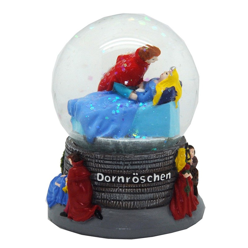 - Snow globe: At the centre of this fairy tale snow globe is Sleeping Beauty just kissed by the prince. On the base, the story of the fairy tale is told in pictures.