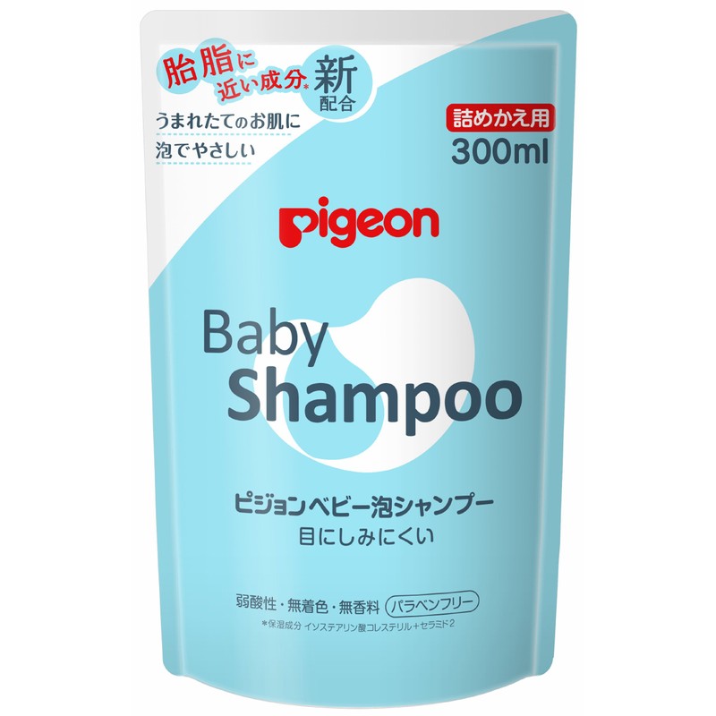 "Pigeon Foam Shampoo Refill 10.1 fl oz (300ml)" is a baby shampoo (refill) with skincare ideals, focusing on the gentleness of the vernix. For moisturizers, it uses Pigeon Baby Lipid, similar to the vernix (cholesterol instearate, ceramide 2). Low acidity to agree with a baby's skin. This shampoo won't run into eyes and has good defoaming. The smooth, light foam completely removes dirt. Skin irritant tested by dermatologists. (Some users may still experience skin problems.) Low acidity, color free, perfume free, paraben free. Directions: Make sure you read "How to Refill the Bottle" before use.