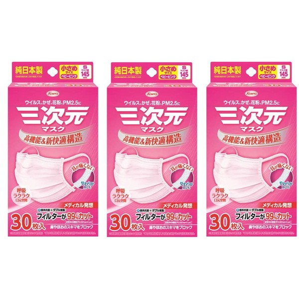 3D Mask, Small, Size S, Baby Pink, 30 Sheets x 3 Packs