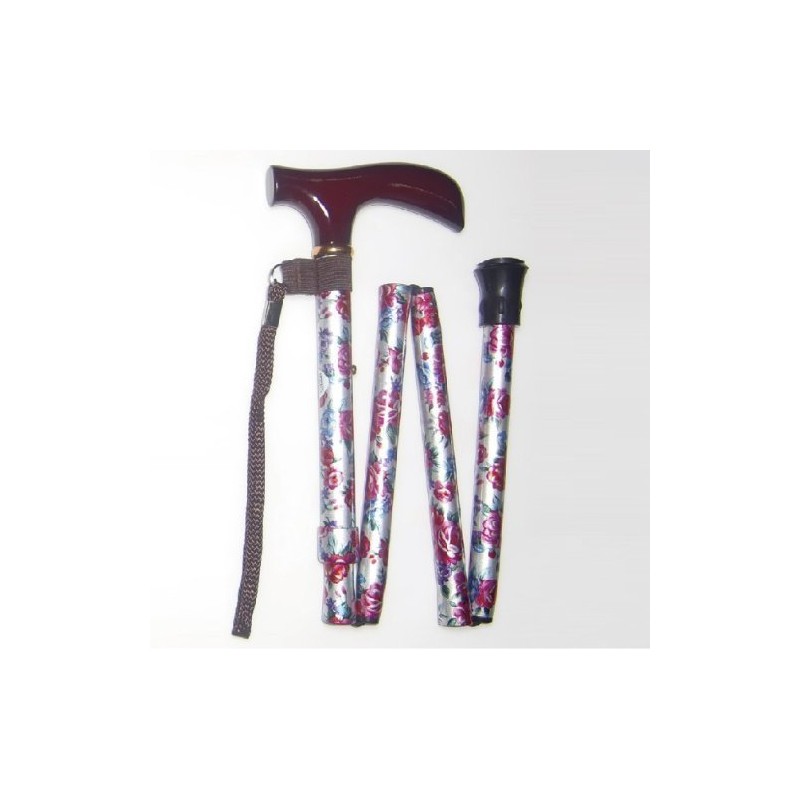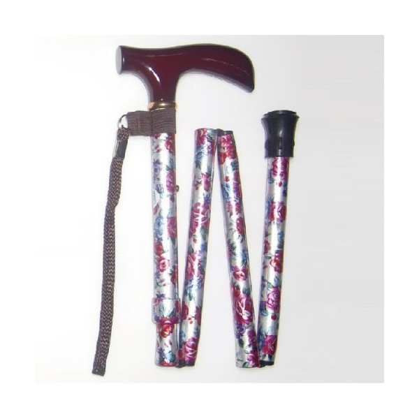 中嶋次朗商店 アルミ4段式 折りたたみ杖 楓グリップ 花柄 ブラック 514