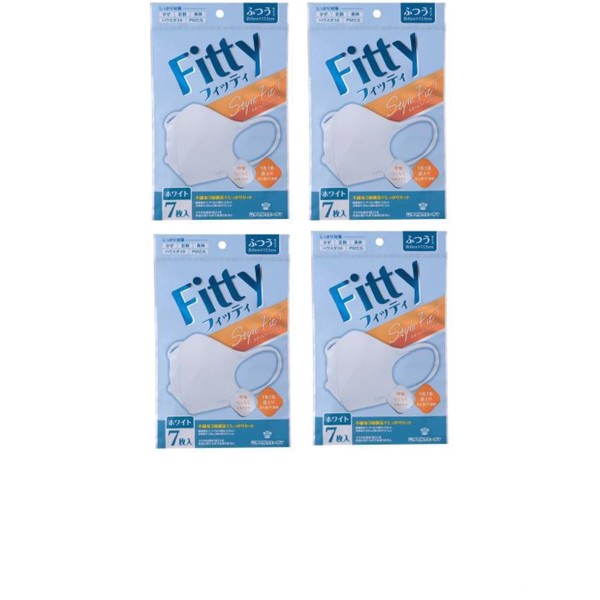 [タマガワエーザイ] (4個セット) フィッティ スタイルフィットプラス 立体 7枚入り ホワイト ふつうサイズ マスク