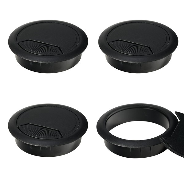 4 Cable Grommets Desk Cable Grommet Table Cable Grommet Desk Cable Feed-Through (Black 60 mm)