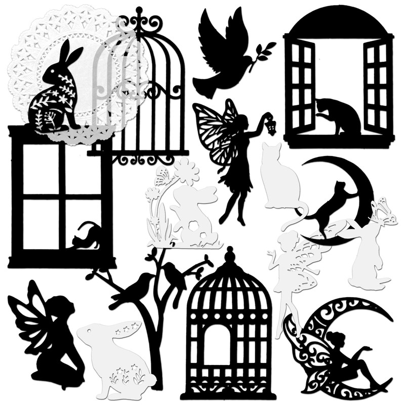 - * ( 様々なテーマ ) * デコレーションペーパーは、窓枠、ウサギ、妖精、鳥、鳥かご、月、猫など、複数の形やパターンが施されており、あらゆるプロジェクトや機会に適した様々なテーマを提供します。