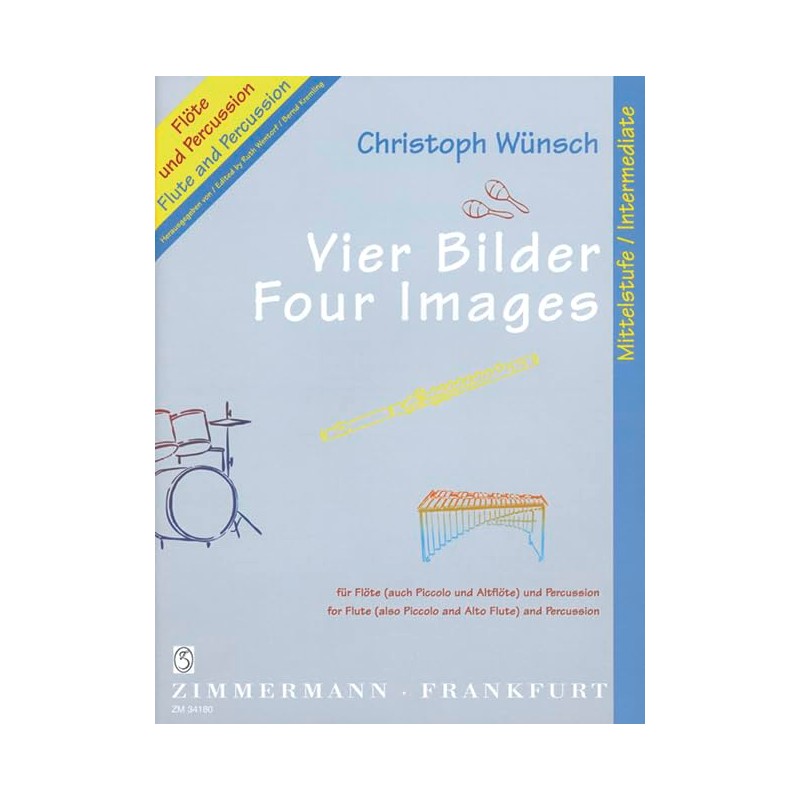 • Quatre images: Flöte (auch Piccolo und Altflöte) und Schlagzeug (1 Spieler). Partition d'execution.