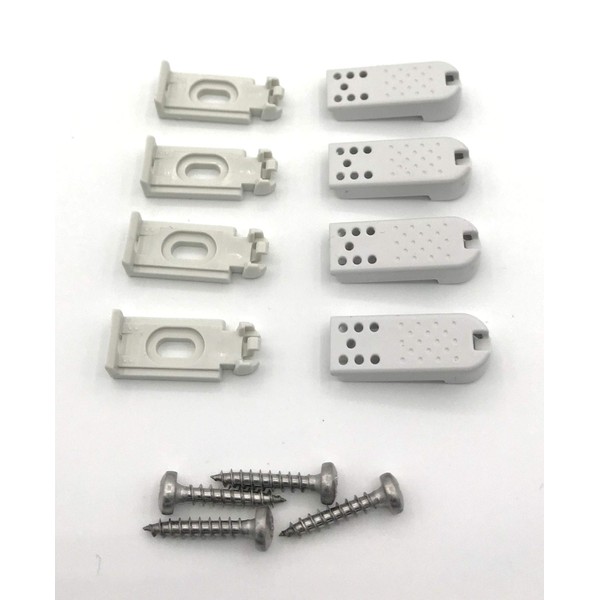 Box contents: 4 clamping shoes (antique white), screws for glass strip mounting.