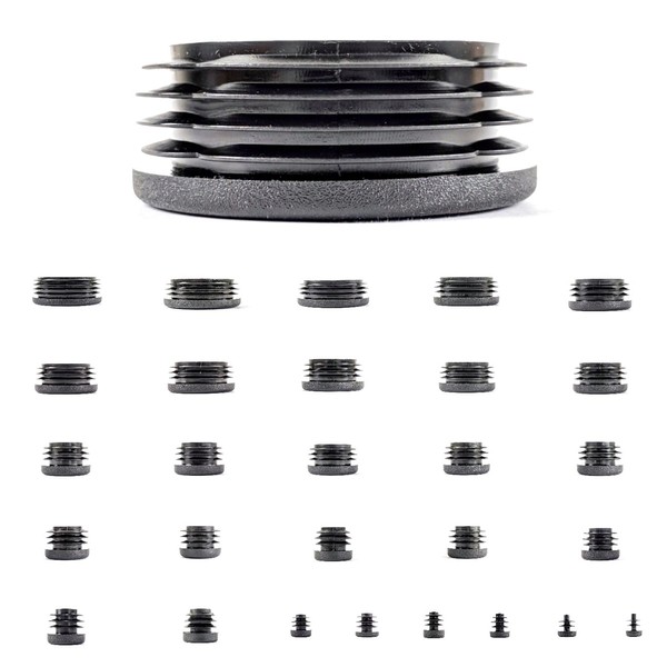 42mm Plastic End Caps, Black Round Tube Inserts, Pack of 4 (See Second Image for Ordering Guide) - Made in Germany