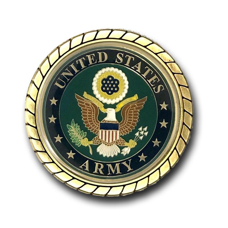 - Beautiful US Army Division Veteran Challenge Coin with US Army Logo on one side. And name of division and a Image of the Unit's Patch with the American flag on the other side.