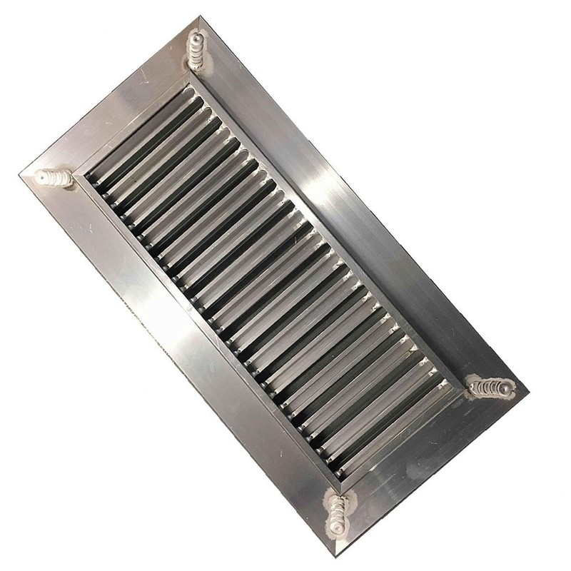 Chameleon Tile & Stone Registers are used with ceramic tile, porcelain tile, slate, granite, marble, travertine, concrete, cork, hardwood and bamboo floors. Registers for either 3/8-inch or 1/2-inch material are available. Specify which thickness when ordering. Made of sturdy aircraft-grade aluminum, Chameleon Tile & Stone Registers come in two parts: a cradle and a frame.■The installer cuts tile and stone materials with a ceramic tile wet saw. ■For wood materials, the installer uses a power saw to cut pieces. ■Pieces are then glued into the register's channels with clear silicone caulk. ■The frame is installed directly on the subfloor, surrounded by tile or stone flooring. The cradle is removable. Dampers are an option, custom-ordered to fit all standard tile & stone register sizes.