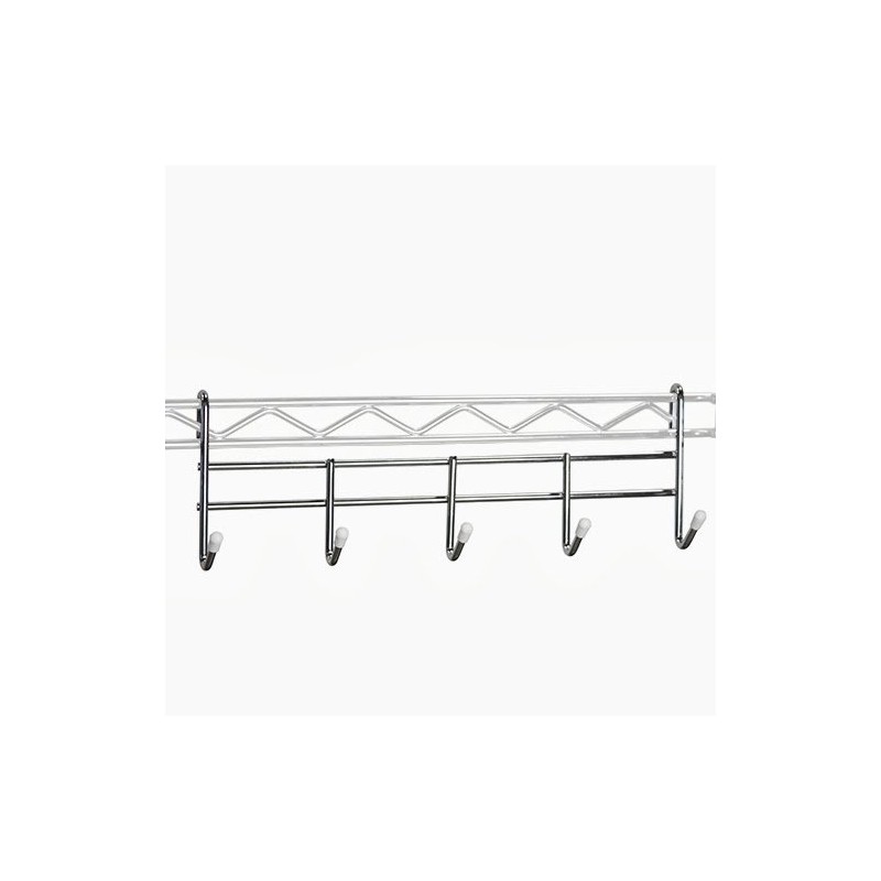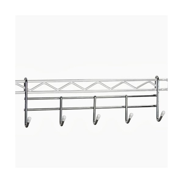 - 2 bent prongs allow hook to hang on the edge of wire shelves or on wire shelving rails