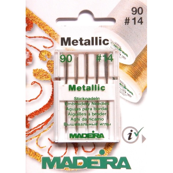 5 Madeira Embroidery Needles for Metallic Thread Flat Shank for Sewing Machine Thickness 90/14