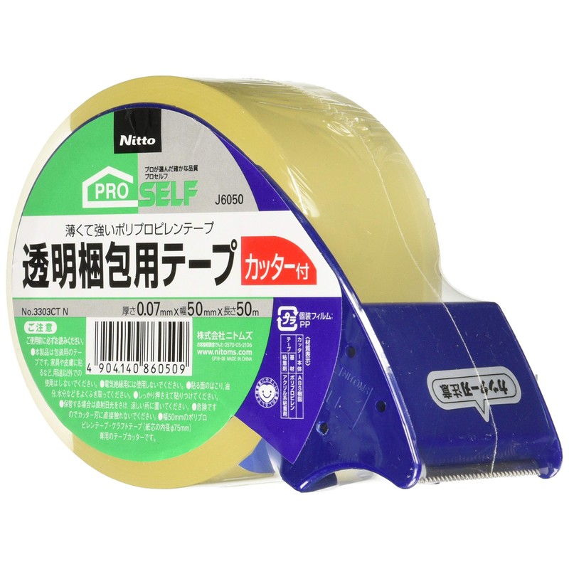 ニトムズ 透明梱包テープ 50mm×50m テープカッター付 J6050