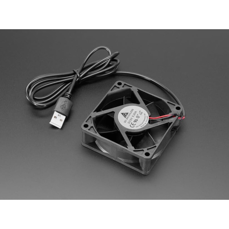 - Specifications: Voltage: 5V Current 0.2A Dimensions: 70mm x 70mm x 25mm Mounting hole dimensions: 61.5mm x 61.5mm, 4.5mm diameter USB Cable Length: approx 1 meter long