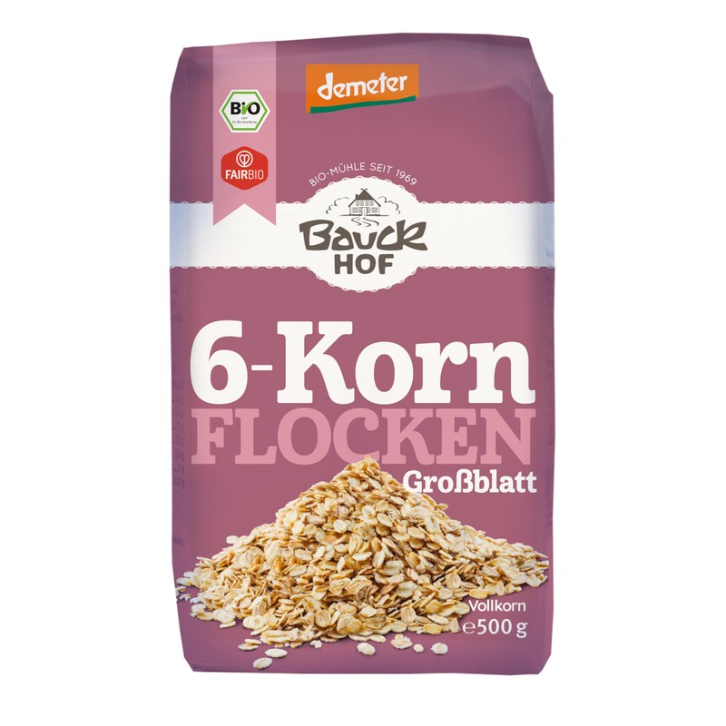 - 6-grain flakes with oats, barley, rye, spelt, rice and millet in Demeter quality