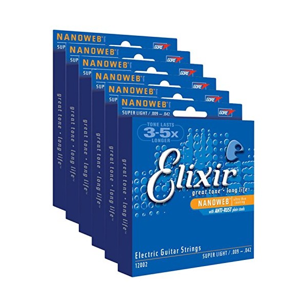 6 Sets of Elixir 12002 Super Light Electric Strings (9-42) (Nanoweb)