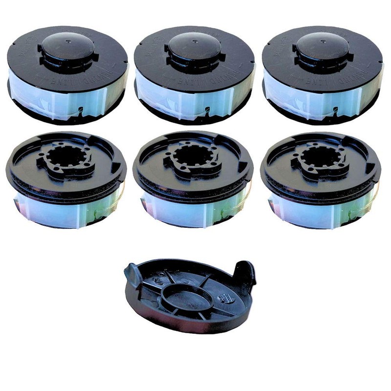 6 Spools + 1 Spool Lid for Lawn Trimmer Compatible / Replacement for Aldi King Top Craft Einhell