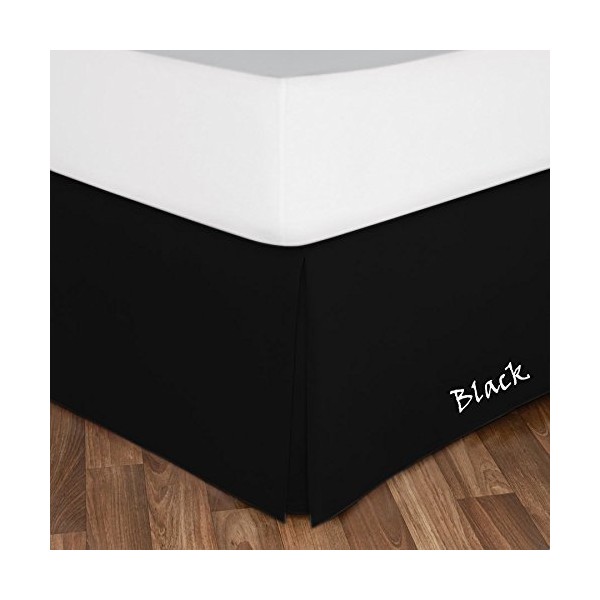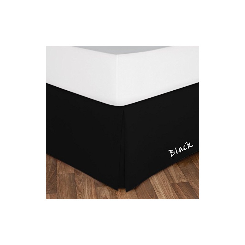 600 Thread Count Both Pattern Solid 1 Piece Bed Skirt 14 Inch Fall 100% Egyptian Cotton and Color ( Queen, Solid,Black)