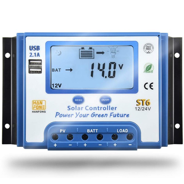60A Solar Charge Controller 12V/24V Automatic Voltage Recognition Solar Panel Charging Discharge Regulator with Dual 5V USB Output Backlight LCD Display