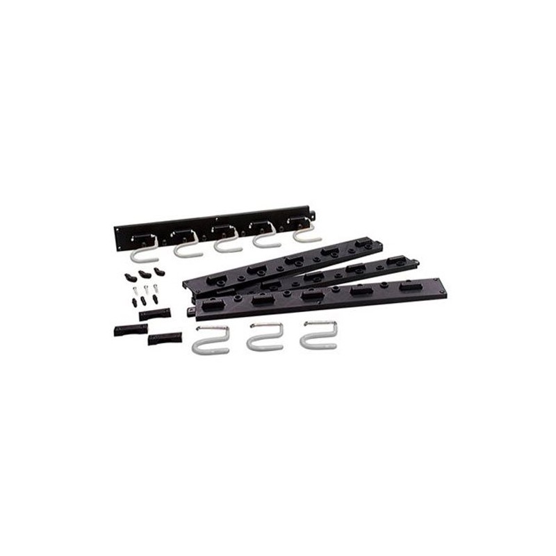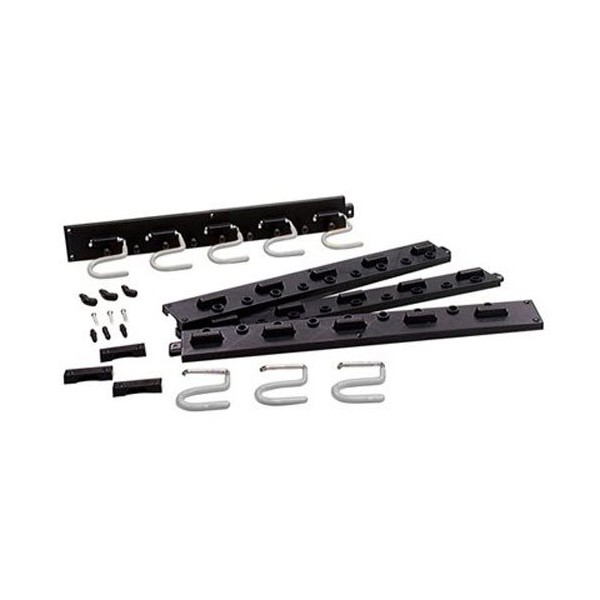 Smartrack, 64" adjustable storage system, Moveable vinyl coated steel hooks & plastic Pegs for flexibility, rail is designed to connect with additional rails for making a continuous system of any length, system includes four 16" interlocking rails, 12 Moveable steel handle holders, 16 Moveable all purpose utility hooks & all mounting hardware, use in garage, basement, kitchen, laundry room, Broom closet or kids room, mounts to solid or hollow doors & walls, dimensions: 1.75" L x 5.5" W x 10" H.