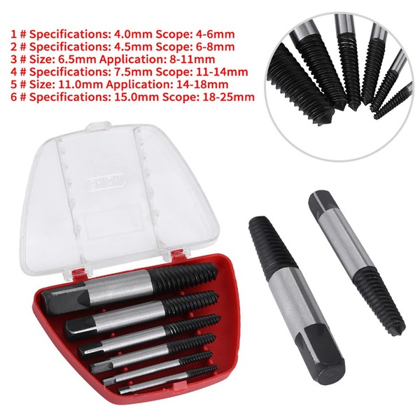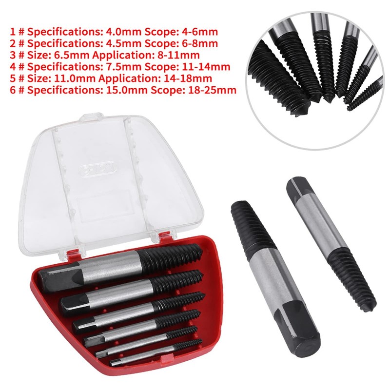 6pcs práctico HSS Damaged Screw Extractor Bolt Stud Remover Set para el hogar