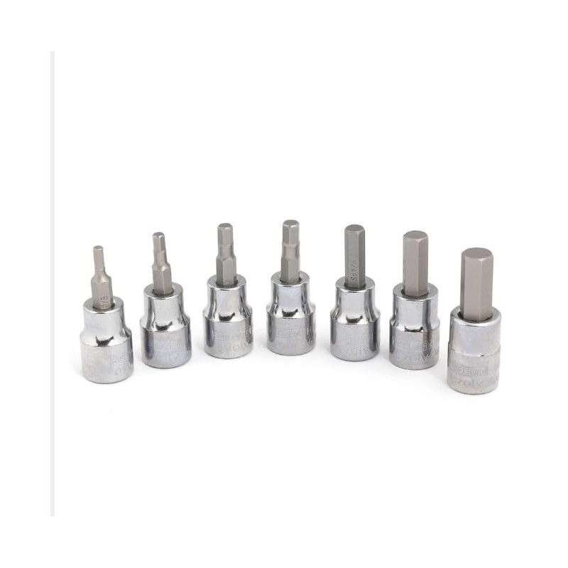 • SIZE RANGE: Complete set includes 1/8", 5/32", 3/16", 7/32", 1/4", 5/16", and 3/8" hex bit sockets