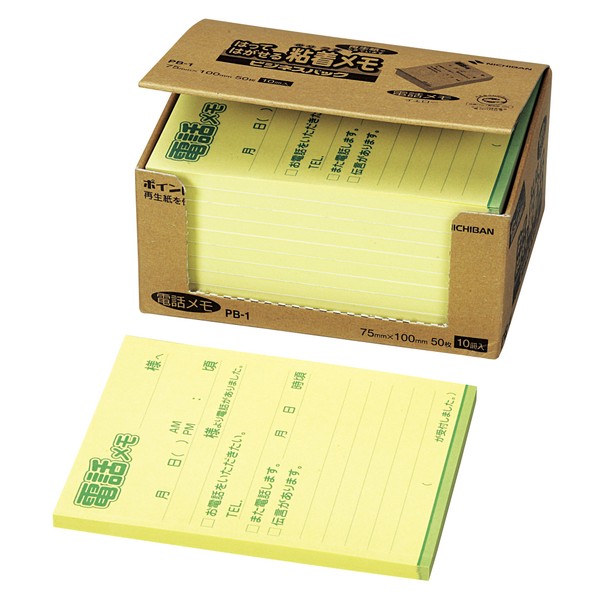 ニチバン 付箋 ポイントメモ 75×100mm 50枚×10冊入 PB-1 電話メモ