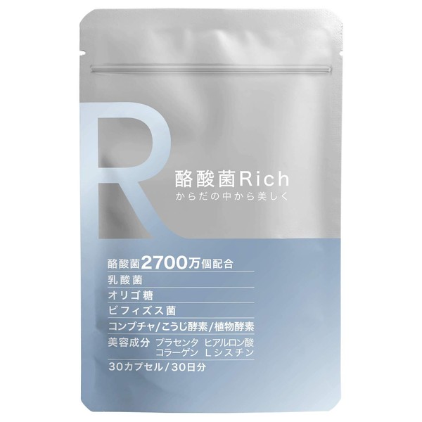 - 【中から美しく健康に】【業界屈指の配合量】酪酸菌Richは1粒に2700万個(*)の酪酸菌が配合されています。酪酸とは短鎖脂肪酸の一種で悪玉菌を抑制したり体内フローラの環境を整え、ビフィズス菌や乳酸菌などの善玉菌が活動しやすい環境を作り出します。酪酸を作れるのは酪酸菌だけ。善玉菌としてビフィズス菌・乳酸菌とならび注目されているのが酪酸菌です。酪酸菌Richはビフィズス菌・乳酸菌・オリゴ糖などフローラを整える成分もバランスよく配合されています。(*1袋8億1000万個配合)