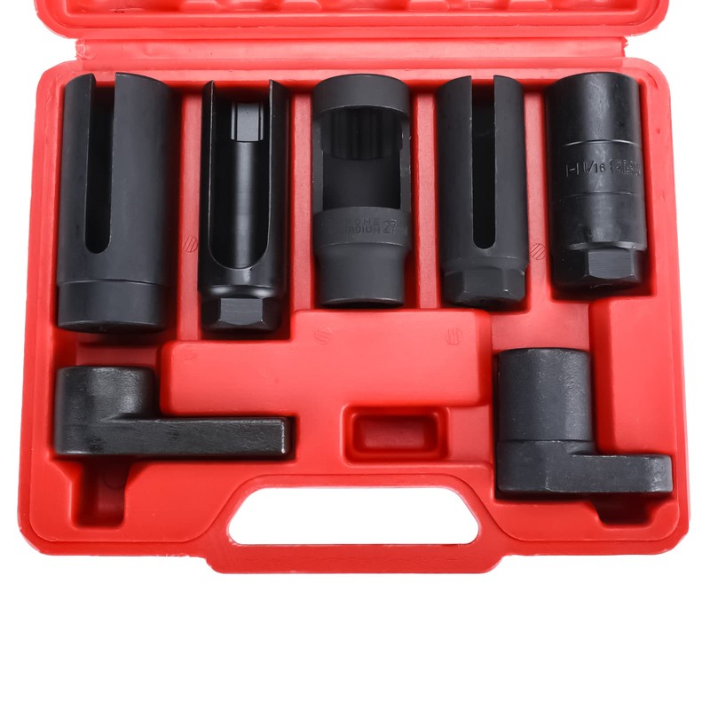 8MILELAKE 7pcs O2 Oxygen Sensor Socket Set 7/8", Oil Pressure Sending Unit Master Sensor Socket Tool Kit Universal Puller and Removal Tool