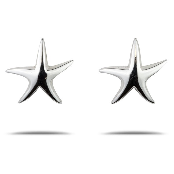 925 Solid Sterling Silver Starfish 16mm Post Stud Earrings – Small Fish Stud Earrings - Hypoallergenic