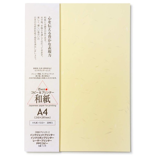 大直 コピー用紙 和紙 大礼紙 イエロー A4 20枚 206040402