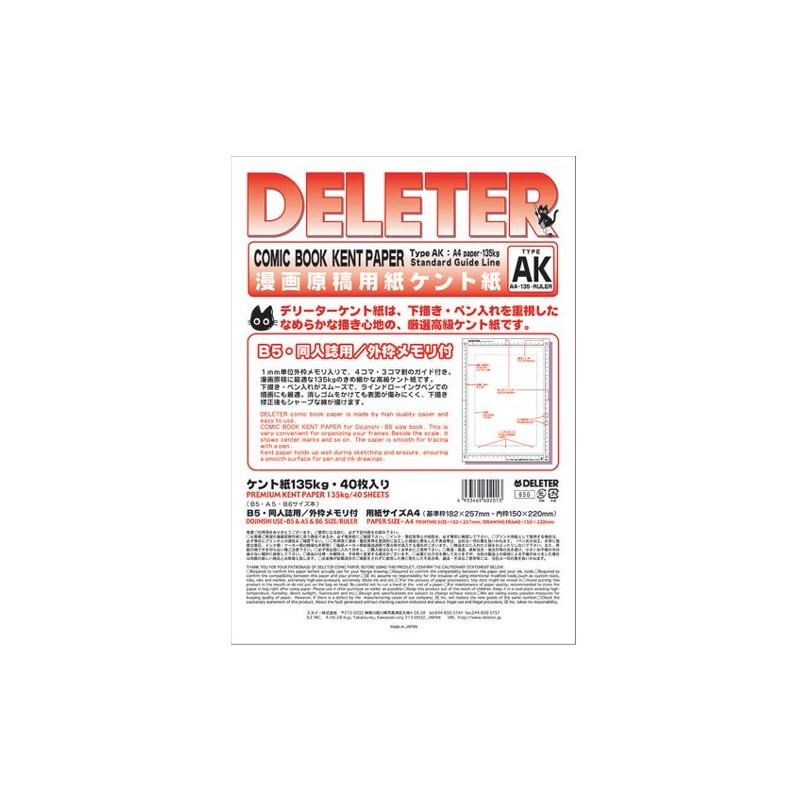 デリーター 原稿用紙 ケント紙 A4 メモリ付 AKタイプ135Kg