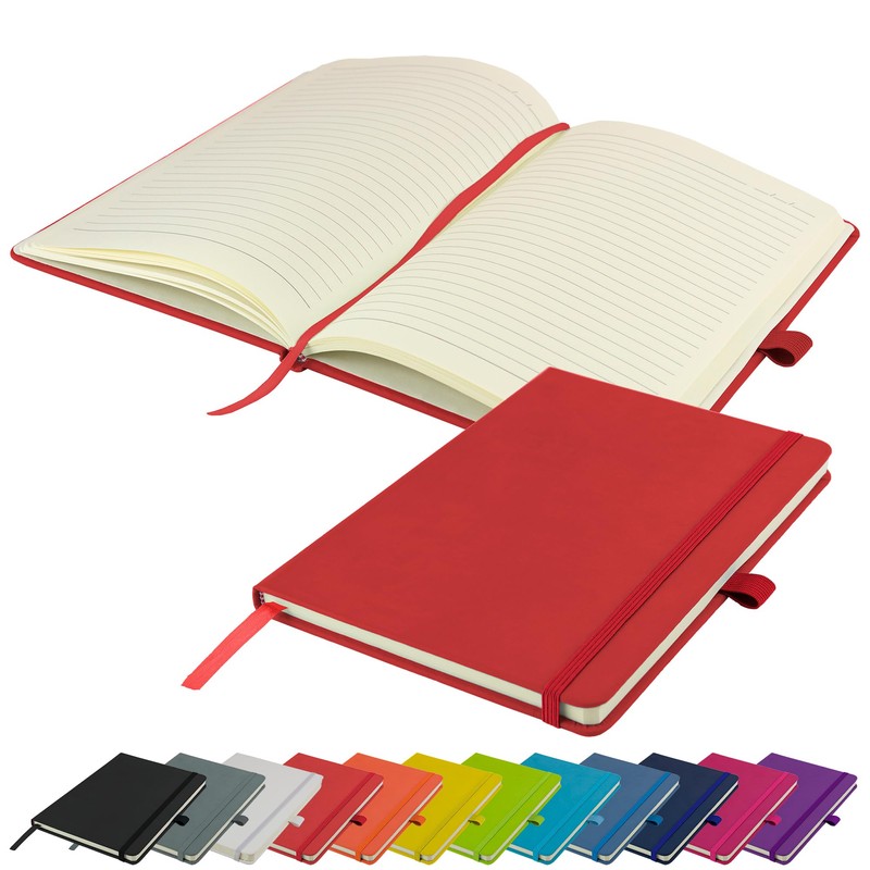 - 12 x notebook colours available - Black, Navy, Red, White, Light Blue, Orange, Purple, Grey, Teal, Yellow, Pink and Lime
