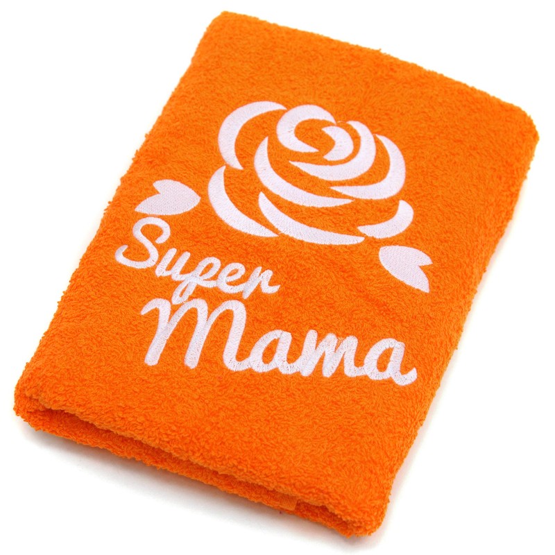 - A beautiful coloured towel with a gentle embroidery of the rose and a carefully embroidered wording "Super Mama" will immediately find a place in the home and in the heart of every mother.
