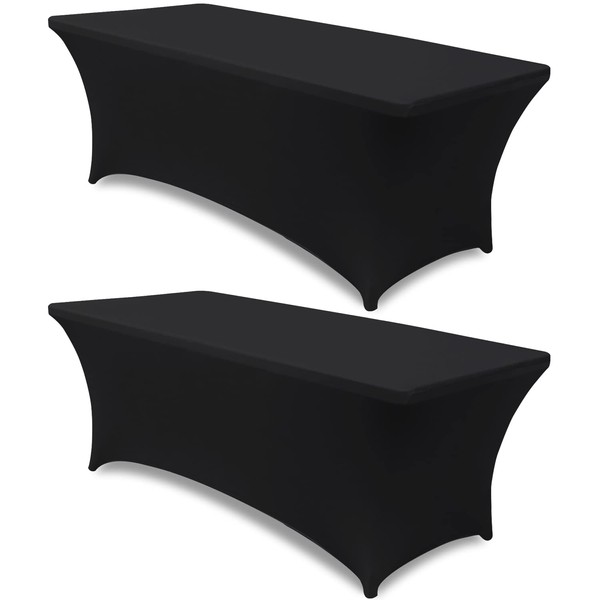 ABCCANOPY 2 Pack 6 ft Spandex Tablecloths Stretch Table Cover Rectangular Table Fitted Polyester Tablecover Table Toppers, Black