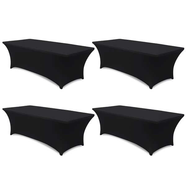 ABCCANOPY 4 Pack 6 ft Spandex Tablecloths Stretch Table Cover Rectangular Table Fitted Polyester Tablecover Table Toppers Black