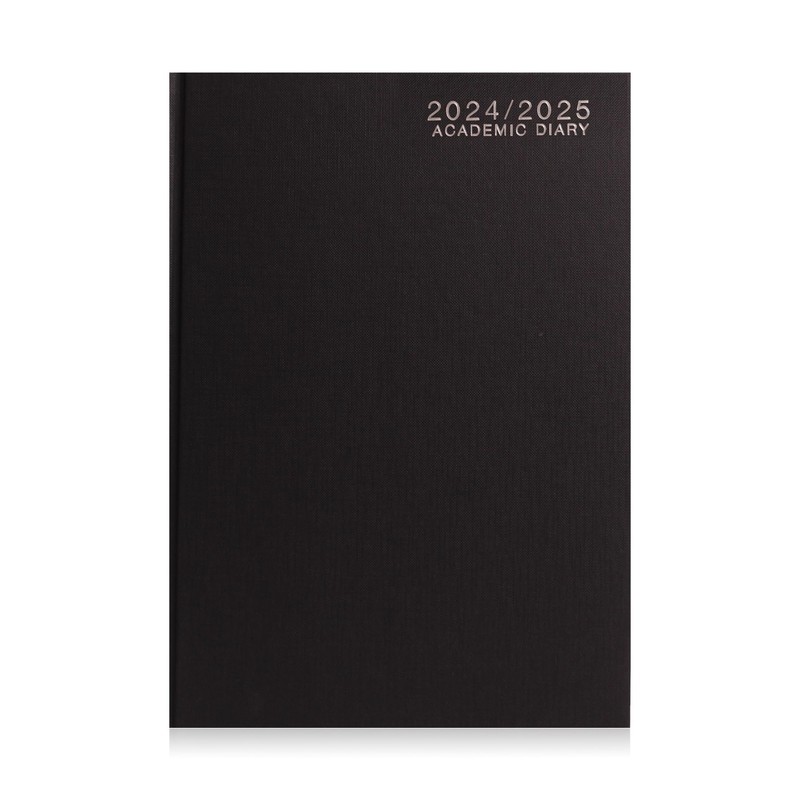 Academic Diary 2024-2025 A4 Day-A-Page Student Diary with Case Binding Black