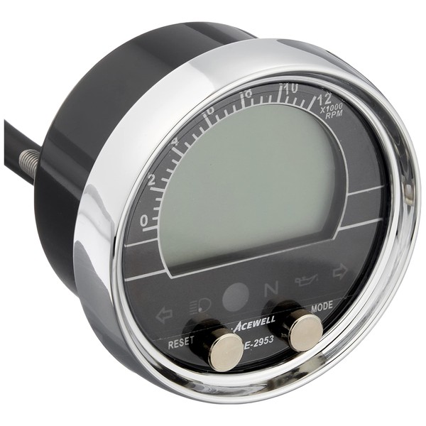 - Function 2: Water Oil thermometer (1 line + 25 to 180 degrees) *Temperature sensor sold separately; Fuel meter (±100/250/510 Ω; Switchable type/off); Total & riding time; Maximum speed, maximum rotation, maximum temperature memory; Average speed display; Hour meter