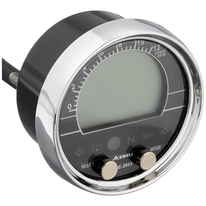 - Function 1: Speedometer (full scale 399.9 km/h); Odometer; Twin Tripmeter; Burgrain Tachometer (full scale 12,000 rpm); Digital tachometer (full-scale 19900 rpm, 100 rpm increments). Shift warning function