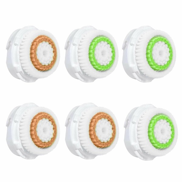 Compatiable For Facial Cleansing Brush Heads, Face Brush Head Replacement as Brush Head Facial Cleaning Tool (6 Pack, Brown+Green)