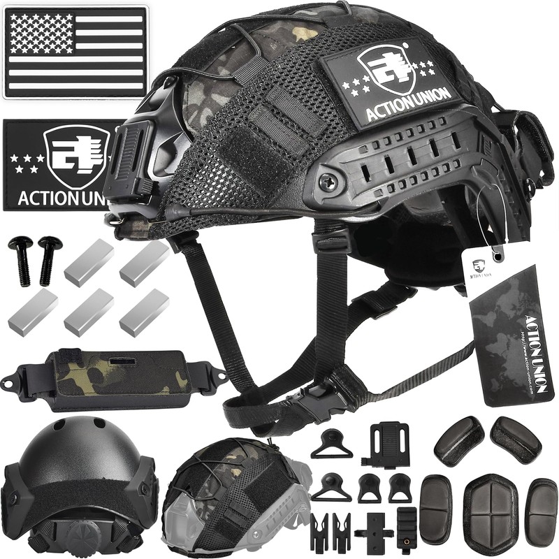 ACTIONUNION Airsoft Helmet Pro Set PJ Type Tactical Paintball Helmet (Black Set)