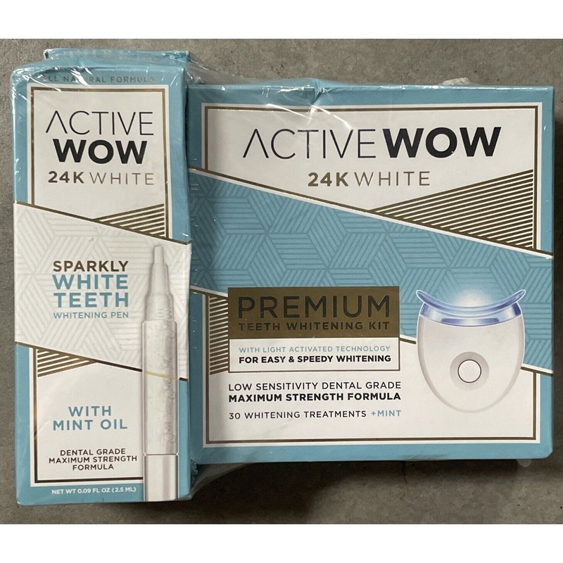 Active Wow Teeth 24K White Premium Whitening Kit, Toothpaste, Pen, Sealed