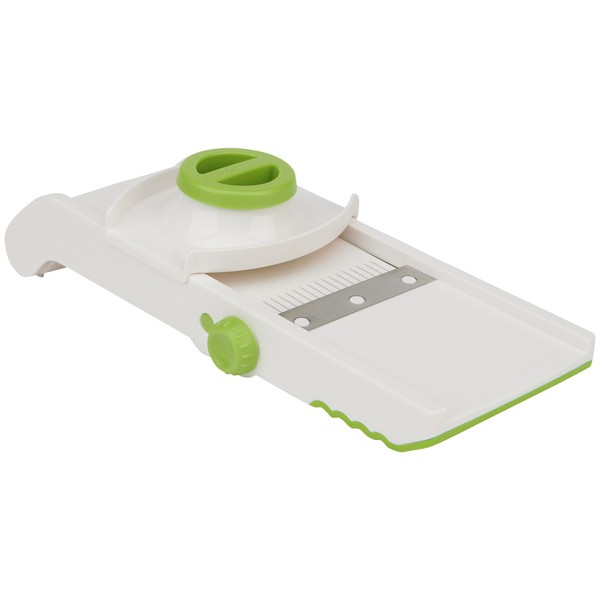- Non-slip bumper holds slicer steady on cutting board or over bowls