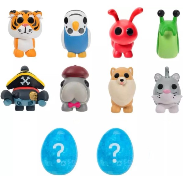 Bring the highly desirable and sought-after pets from the popular online game Adopt Me to life! Open the box to reveal eight pets ranging in rarity from common to legendary. As a bonus, unwrap the two eggs, submerge them in water to remove the outer coating, and reveal one of the egg styles from the game. Each themed egg contains a 2” plastic Mystery Pet. In series three, there are ten pets to collect, including the Dugong, Ant, Snow Leopard, Halloween Blue Scorpion, Slug, Lunar Tiger, Parakeet, Pomeranian, and two hidden pets! Each Mystery Pet comes straight from your favorite online game and, as a bonus, includes an exclusive Virtual Item Code and a collector’s guide. Pets range in rarity from common to legendary, just like in the game, and are perfect for playing, displaying, and trading. Collect them all!