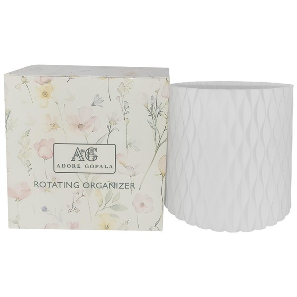 - ELEGANT DESIGN: White textured rotating organizer with a modern geometric wave pattern, perfect for storing makeup brushes and beauty accessories
