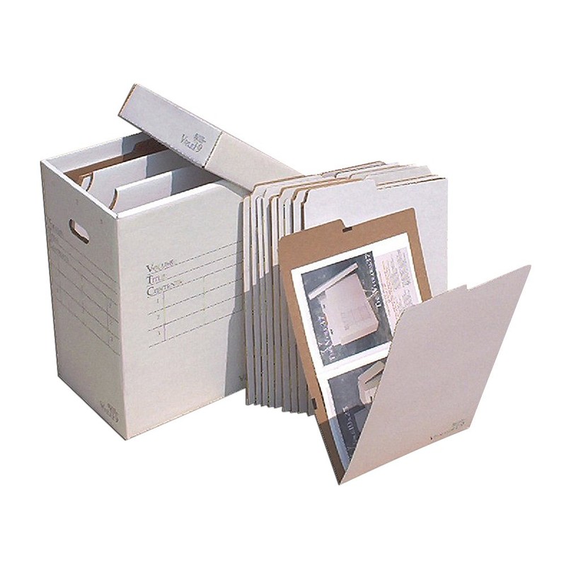 VFile19 W10 VFolder19 -- Up to 12x18. By Advanced Organizing Systems, Inc. The ideal cost solution for Vertical Flat Storage up to 12x18. Perfect for 11x17 and 12x18 media flat storage with the convenience of a Vertical File. Use for active or permanent storage. Individual vertical folders make retrieving and organizing documents easy. Sturdy, attractive corrugated cardboard with gray lettering. Narrow width saves floor space. Stackable with labeling on top, front and side for easy identification. Interior partitions and rigid VFolders provide flat storage. 10 VFolder19s are included. The VFile19 holds 30 VFolder19s with up to 750 sheets. Overall size is 14x12x20.